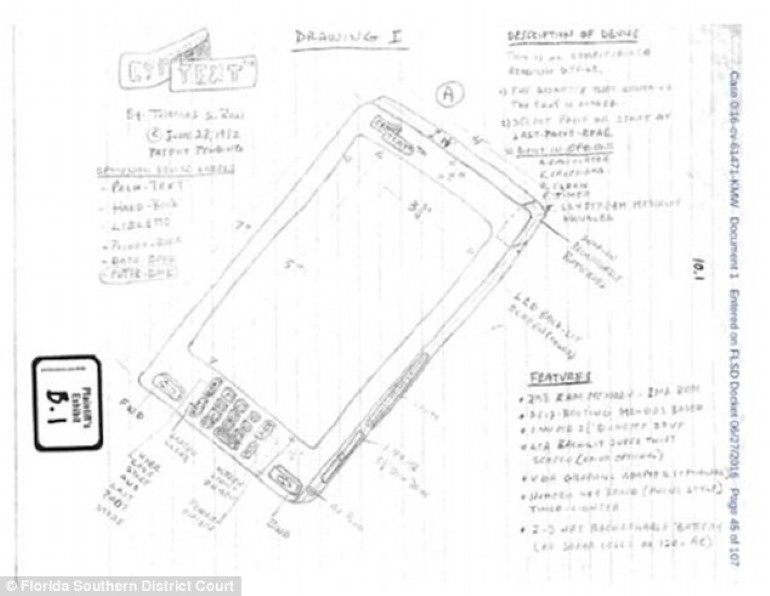 Ο κ. Ross κατέθεσε μήνυση κατά της Apple αυτή την εβδομάδα, υποστηρίζοντας τα προϊόντα της γνωστής εταιρείας τεχνολογίας βασίζονται στη δική του εφεύρεση: μια «ηλεκτρονική συσκευή ανάγνωσης». Ο κ. Ross υποστηρίζει ότι μεταξύ 23 Μαΐου 1992 και 10 Σεπτεμβρίου 1992 σχεδίασε τρία χειρόγραφα τεχνικά σχέδια της συσκευής. Αυτά περιλαμβάνουν επίπεδα ορθογώνια πλαίσια με στρογγυλεμένες γωνίες, που «συνδυάζουν το design και τη λειτουργικότητα με έναν τρόπο που ποτέ δεν υπήρχε πριν από το 1992.»