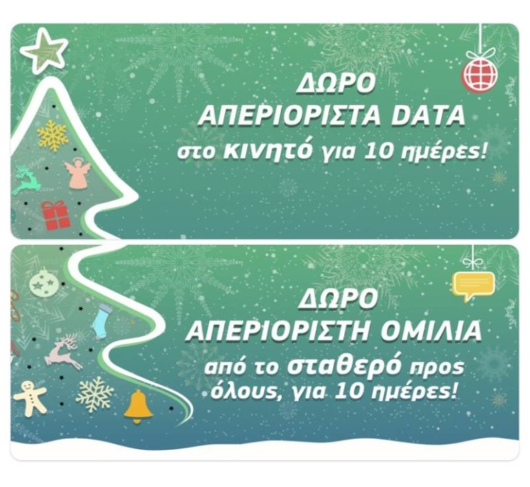 H COSMOTE χαρίζει για τα Χριστούγεννα απεριόριστα δεδομένα για 10 ημέρες σε όλους τους χρήστες κινητής, αλλά και απεριόριστη ομιλία για τους χρήστες σταθερής.