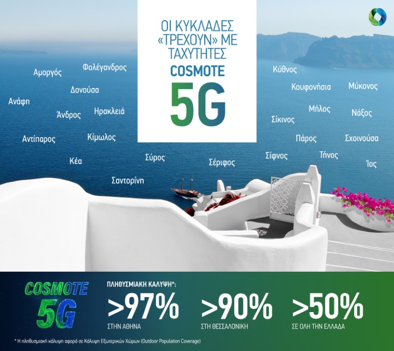Ελληνικό καλοκαίρι με ταχύτητες COSMOTE 5G απολαμβάνουν πλέον οι κάτοικοι και οι επισκέπτες στα νησιά των Κυκλάδων, καθώς συνεχίζεται με αμείωτο ρυθμό η ανάπτυξη του μεγαλύτερου[1] 5G δικτύου στην Ελλάδα. Ανάφη, Άνδρος, Αντίπαρος, Δονούσα, Ηρακλειά, Ίος, Κέα, Κίμωλος, Κύθνος, Μήλος, Μύκονος, Νάξος, Πάρος, Σέριφος, Σίφνος, Σύρος, Σχοινούσα, Τήνος και Φολέγανδρος «τρέχουν» από τις αρχές Ιουλίου με ταχύτητες 5G, ενώ ήδη από τον Μάιο το δίκτυο 5ης γενιάς της COSMOTE είναι διαθέσιμο και στη Σαντορίνη, την Αμοργό, τα Κουφονήσια και την Σίκινο.