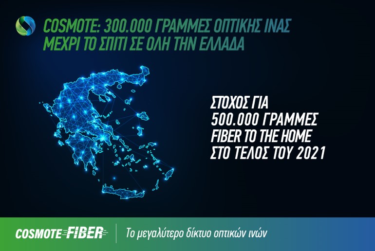 Ξεπέρασαν τις 300.000 τα νοικοκυριά και οι επιχειρήσεις σε όλη την Ελλάδα που έχουν πρόσβαση σε 100% οπτική ίνα μέχρι το σπίτι (FTTH) μέσω του COSMOTE Fiber[1], του μεγαλύτερου δικτύου οπτικών ινών στη χώρα, με την COSMOTE να επιτυγχάνει τον φιλόδοξο στόχο που είχε θέσει για την επέκταση του δικτύου οπτικών ινών μέχρι το τέλος του 2020.