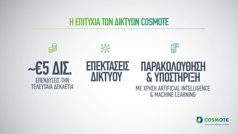 Σε ό,τι αφορά τις επιδόσεις των δικτύων, ο κ. Τσαμάζ είπε ότι «τα δίκτυα της χώρας αντέχουν», ενώ για τα δίκτυα COSMOTE σταθερής και κινητής σημείωσε ότι «μέχρι στιγμής ανταποκρίνονται με απόλυτη επιτυχία στη μεγάλη αύξηση της κίνησης, χωρίς κανένα πρόβλημα.» Απέδωσε δε αυτήν την επιτυχία στις μεγάλες επενδύσεις του Ομίλου σε υποδομές, στις επεκτάσεις δικτύου που έγιναν άμεσα όταν χρειάστηκε από τους μηχανικούς της COSMOTE, και στις αυτοματοποιημένες διαδικασίες Artificial Intelligence & Machine Learning που έχουν υλοποιήσει οι άνθρωποι του Ομίλου για την παρακολούθηση και υποστήριξη του δικτύου. Σε ό,τι αφορά την κίνηση, έκανε λόγο για εντυπωσιακά στοιχεία. Όπως ανέφερε, στη σταθερή: