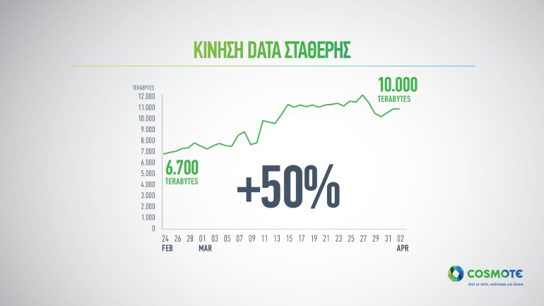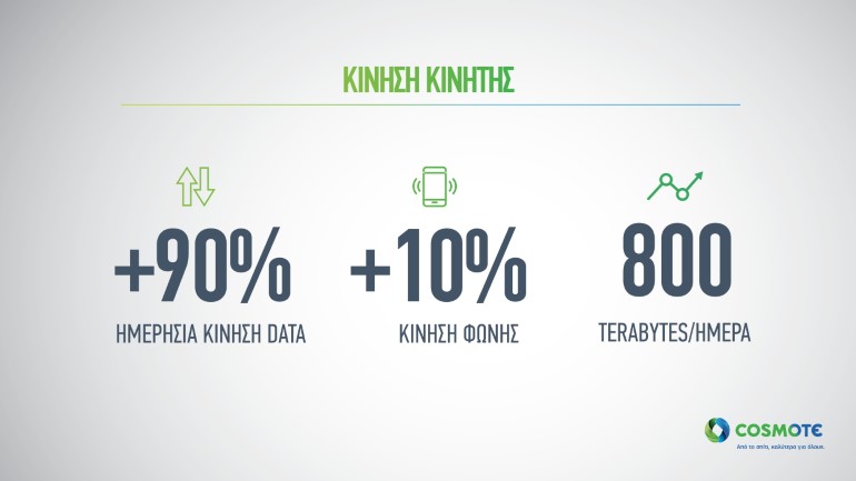 o    Η κίνηση δεδομένων αυξήθηκε περίπου 90% σε σχέση με τις προηγούμενες εβδομάδες, στα 800 Terabyte την ημέρα, και λόγω της προσφοράς 15 δωρεάν GB.
