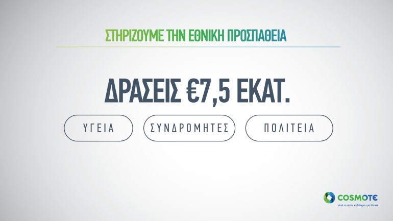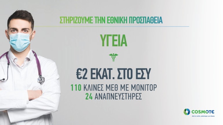 Σε αυτά περιλαμβάνεται η μεγάλη δωρεά, ύψους 2 εκατ. ευρώ για ανάγκες του συστήματος Υγείας της χώρας, με τον ΟΤΕ να έχει ήδη παραγγείλει 110 κλίνες ΜΕΘ με μόνιτορ και να έχει διαθέσει 24 αναπνευστήρες, αλλά και οι πρωτοβουλίες με τις οποίες στέκεται δίπλα στους συνδρομητές, όπως τα δωρεάν 15 GB στην κινητή, οι δωρεάν κλήσεις σταθερής μέσα στο Πάσχα, αλλά και η δωρεάν προβολή του περιεχομένου του καναλιού COSMOTE History στο YouTube.