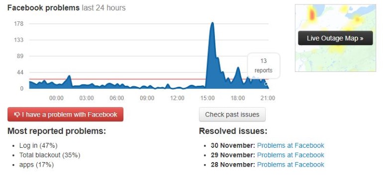 Εκτός λειτουργίας βρέθηκε το facebook για χιλιάδες χρήστες που δεν μπορούσαν να εισέλθουν στο λογαριασμό τους. Οι σχετικές αναφορές έφτασαν τις σχεδόν 3.500 στο Down Detector.