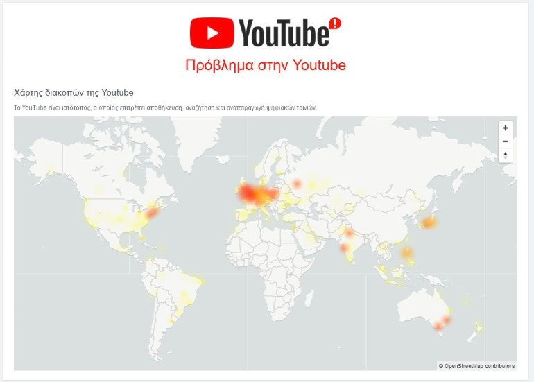 Μεγάλα προβλήματα παρουσιάζει από το μεσημέρι της Δευτέρας η πλατφόρμα αναπαραγωγής video YouTube. To site είναι «κάτω» με χρήστες σε όλο τον κόσμο να αδυνατούν να συνδεθούν και να παρακολουθήσουν videos.