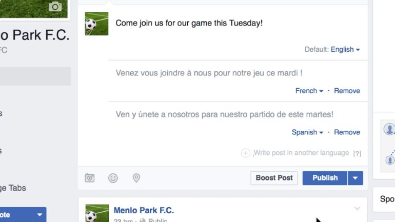 Σύντομα θα είστε σε θέση να δημοσιεύσετε στο Facebook σε πολλές γλώσσες, χρησιμοποιώντας μια νέα λειτουργία αυτόματης μετάφρασης, όπως ανέφερε σήμερα η εταιρεία. Το «multilingual composer», όπως ονομάζεται η λειτουργία, σας επιτρέπει να γράψετε ένα μήνυμα σε μία γλώσσα και στη συνέχεια να επιλέξετε επιπλέον γλώσσες, στις οποίες θα θέλατε να δημοσιευθεί. Αν γράψετε ένα μήνυμα στα ελληνικά για παράδειγμα και επιλέξετε μετάφραση στα αγγλικά, τότε όποιος φίλος σας χρησιμοποιεί το Facebook στα αγγλικά, θα δει το μήνυμά σας στη δική του γλώσσα.