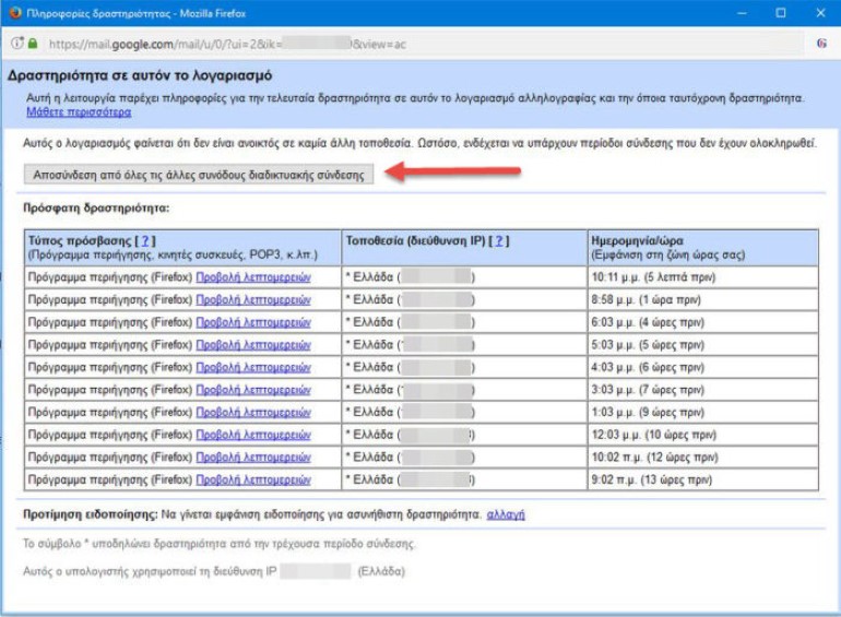 Στο ίδιο παράθυρο μπορείτε επίσης να δείτε μια λίστα με τις συσκευές και τις IPs μέσω των οποίων έχετε κάνει sign-in στο λογαριασμό σας. Αυτό θα σας βοηθήσει να εξετάσετε εάν υπάρχει οποιαδήποτε δραστηριότητα που δεν την γνωρίζετε.