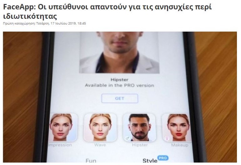 «Το Face App έγινε δημοφιλές σε πολύ μικρό χρονικό διάστημα, ιδιαίτερα σε νεαρές ηλικίες. Αυτή την στιγμή η εφαρμογή είναι από τις πρώτες σε μεταφορτώσεις σε 121 κράτη και υπολογίζεται ότι πάνω από 150 εκ. χρήστες την έχουν χρησιμοποιήσει. Οι άδειες που ζητά από τους χρήστες περιλαμβάνουν πρόσβαση σε τεράστιο όγκο προσωπικών δεδομένων. Η λειτουργία της έχει ήδη δημιουργήσει μεγάλη ανησυχία σε ειδικούς στο δίκαιο της προστασίας των προσωπικών δεδομένων. Προκύπτουν ερωτήματα αναφορικά με την ασφάλεια και την προστασία των χρηστών, ειδικά αν δεν εφαρμόζεται επαρκώς το νομικό πλαίσιο της ΕΕ. Δεδομένου ότι η εφαρμογή χρησιμοποιεί τεχνολογία αναγνώρισης προσώπου (face recognition technology) και συλλέγει βιομετρικά στοιχεία, ενώ η έδρα της εταιρείας που την ανέπτυξε και την διαχειρίζεται βρίσκεται εκτός Ε.Ε ερωτάται η Επιτροπή: