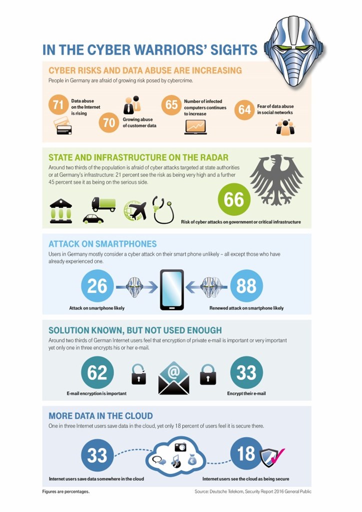 Το ινστιτούτο Allensbach διεξήγαγε 1.500 ερωτηματολόγια στο πρώτο δεκαπενθήμερο του Αυγούστου 2016, μεταξύ ατόμων άνω των 16 ετών. Περισσότερες πληροφορίες μπορείτε να βρείτε στο www.telekom.com/security όπως και στο ιδιαίτερα παραστατικό infographic.