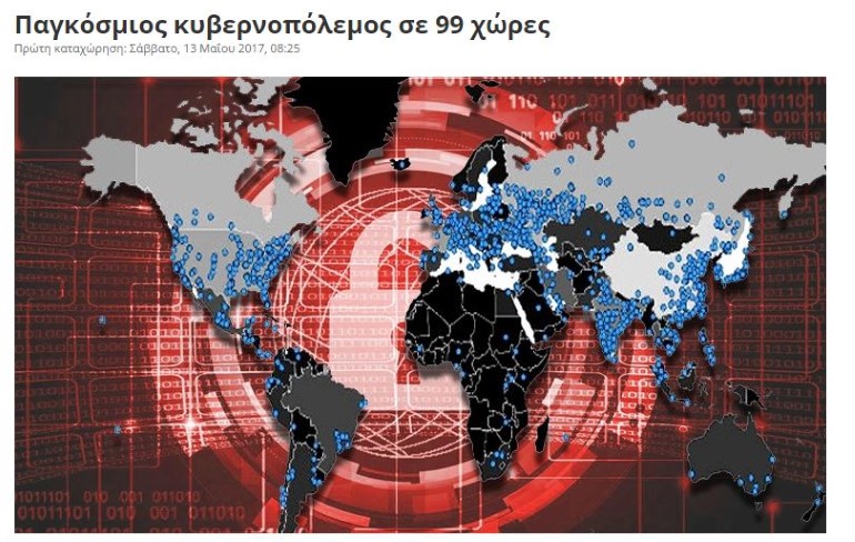 Την Παρασκευή έλαβε χώρα μία από τις μεγαλύτερες κυβερνο-επιθέσεις στην ιστορία, αφού εντοπίστηκαν τουλάχιστον 200.000 περιστατικά όπου συστήματα μολύνθηκαν από ransomware. Το ransomware είναι κακόβουλο λογισμικό το οποίο «κλειδώνει» τα αρχεία ενός υπολογιστή έως ότου το θύμα καταβάλει λύτρα. Σύμφωνα με δημοσίευμα του βρετανικού ειδησεογραφικού δικτύου BBC, τα εργαλεία που χρησιμοποιήθηκαν για αυτή την επίθεση πιστεύεται ότι έχουν κλαπεί από την Εθνική Υπηρεσία Ασφάλειας (NSA) των ΗΠΑ. Οι επιθέσεις είχαν στόχο οργανισμούς σε ολόκληρο σχεδόν τον κόσμο.