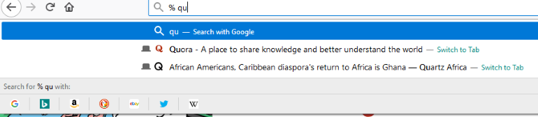 H Mozilla προσέθεσε μια νέα επιλογή “Αναζήτηση σε Καρτέλες” στο μενού του Firefox, από την έκδοση 66. Η ομάδα του Firefox ήδη, από την έκδοση 64, έχει ενσωματώσει ένα χαρακτηριστικό για την αναζήτηση όρων στις καρτέλες που έχετε ανοιχτές. Το μόνο που έχετε να κάνετε είναι να πληκτρολογήσετε στην μπάρα διεύθυνσης: “%”, κενό, τη λέξη/όρο που ψάχνετε.