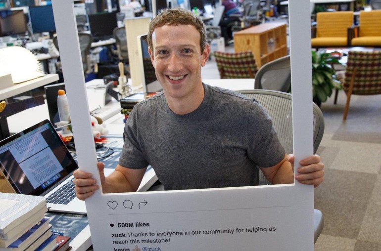 Μια φωτογραφία κάνει το γύρο του διαδικτύου και δείχνει τον Mark Zuckerberg του Facebook να χαμογελά με ένα χάρτινο πλαίσιο “Instagram” για να γιορτάσει τα 500 εκατομμύρια μηνιαίους χρήστες της υπηρεσίας.