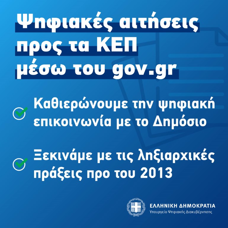 Η ψηφιακή επικοινωνία μεταξύ πολιτών και υπηρεσιών υλοποιήθηκε από το Εθνικό Δίκτυο Υποδομών Τεχνολογίας και Έρευνας (ΕΔΥΤΕ ΑΕ) και εξασφαλίζει την εύρυθμη, άμεση και ασφαλή υποβολή και διεκπεραίωση αιτημάτων. Στο αμέσως επόμενο διάστημα θα διευρυνθούν τόσο οι υπηρεσίες που θα επικοινωνούν ψηφιακά με τους πολίτες, όσο και τα έγγραφα των οποίων η έκδοση θα αιτείται ηλεκτρονικά.