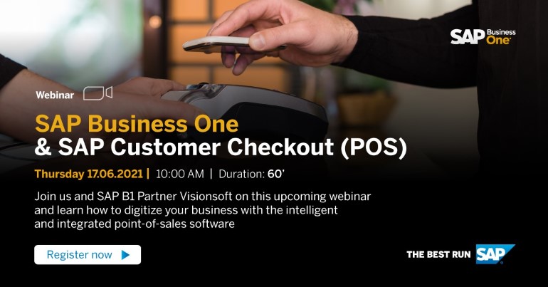 Με στόχο να βοηθήσει επιχειρήσεις να εξαλείψουν την πολυπλοκότητα και να μετατραπούν σε «έξυπνες επιχειρήσεις», η SAP, διοργανώνει την Πέμπτη, 17 Ιουνίου webinar με θέμα ‘SAP Business One & SAP Customer Checkout (POS)’. Το webinar, το οποίο θα ξεκινήσει στις 10:00 το πρωί και θα διαρκέσει μία ώρα, θα προσφέρει πρακτική γνώση για τη ψηφιοποίηση των επιχειρήσεων μέσω «έξυπνων» και ολοκληρωμένων point-of-sales λύσεων.