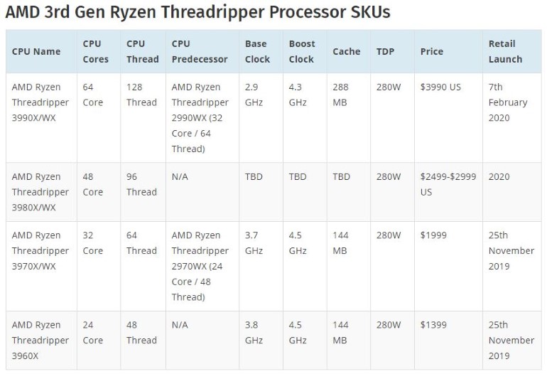 O Threadripper 3990X θα είναι διαθέσιμος από τις 7 Φεβρουαρίου προς… 3.990 δολάρια!