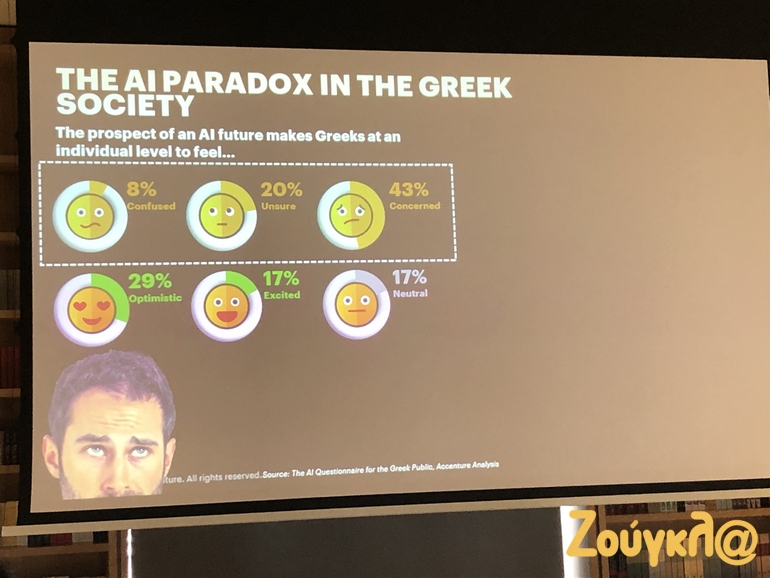 Οι Έλληνες σύμφωνα με τα πορίσματα μιας μεγάλης έρευνας, της πρώτης του είδους της, που έγινε από τη Microsoft και την Accenture, αν και δείχνουν να αναγνωρίζουν τη σημασία των εφαρμογών αυτών, δείχνουν επίσης φοβισμένοι και επιφυλακτικοί απέναντι της. Ίδια εικόνα και για τον παραγωγικό τομέα, δηλαδή τις επιχειρήσεις,  που ενώ πιστεύουν στη δυναμική του ΑΙ ως καταλύτη αλλαγής και επίτευξης ανταγωνιστικού πλεονεκτήματος, είναι ακόμα διστακτικές στην ενσωμάτωσή του.