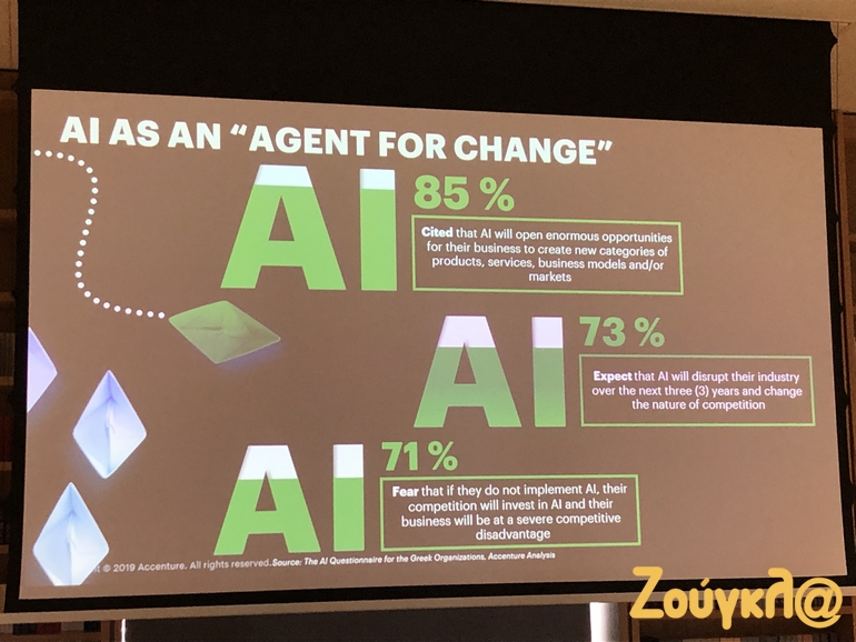 Παρόμοια είναι και η αντιμετώπιση του ΑΙ από ηγετικά στελέχη επιχειρήσεων στην Ελλάδα, τα οποία ενώ αναγνωρίζουντη δυναμική της Τεχνητής Νοημοσύνης, είναι διστακτικοί στο να επενδύσουν συστηματικά.