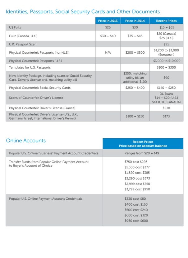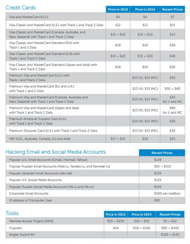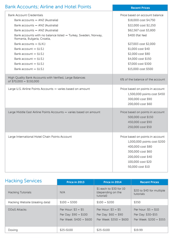 Μπορείτε να δείτε τον πλήρη τιμοκατάλογο της Dell παρακάτω. Αν χρειάζεστε περισσότερες πληροφορίες, μπορείτε επίσης να μελετήσετε την πιο πρόσφατη έκθεση της εταιρείας που ονομάζεται Underground Hacker Markets.