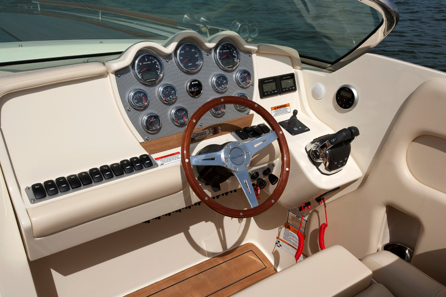 O χώρος διακυβέρνησης είναι ευρύχωρος και ακριβώς από πίσω υπάρχουν δύο καθίσματα πολυθρόνες, ενώ στο πίσω τμήμα βρίσκονται και θέσεις για ηλιοθεραπεία. Το μήκος του Corsair 32 είναι στα 10,4 μέτρα και το πλάτος στα 2,1μ.