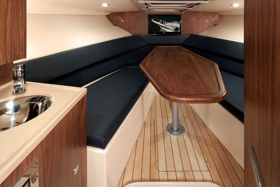 Προσφέρεται σε διάφορα χρώματα, συνδυάζοντας το ξύλο με το λευκό δέρμα, τις μαύρες ή τις χρυσές λεπτομέρειες ή οτιδήποτε άλλο επιθυμεί ο ενδιαφερόμενος. Η καμπίνα του πολυτελούς εσωτερικού, είναι διαθέσιμη με ξύλο καρυδιάς ή κερασιάς, το σαλόνι είναι πλήρως εξοπλισμένο, έχοντας και μια μίνι κουζίνα.