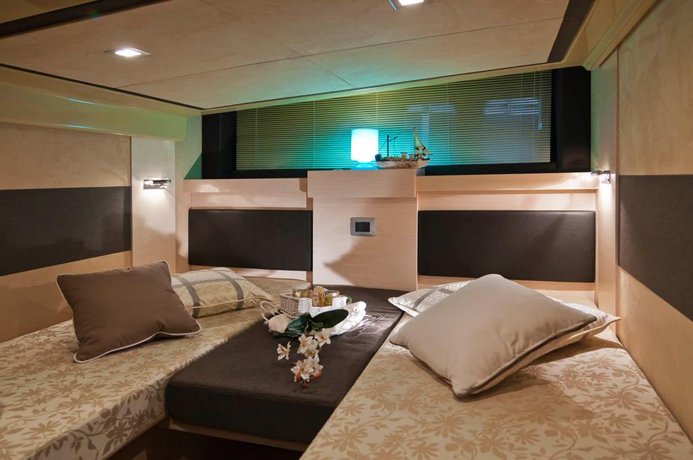 Το ιταλικό σκάφος έχει μήκος 13,7 μέτρα και πλάτος 4,06μ., προσφέροντας ιδιαίτερα ικανοποιητικούς χώρους. Το πιλοτήριο βρίσκεται στο κέντρο και δεξιά, περιλαμβάνοντας πλήθος οργάνων ναυσιπλοΐας και αναδιπλούμενα καθίσματα. Ο κυβερνήτης πατώντας ένα κουμπί μπορεί να ανοίξει την οροφή η οποία καλύπτεται από κόκκινο ύφασμα.