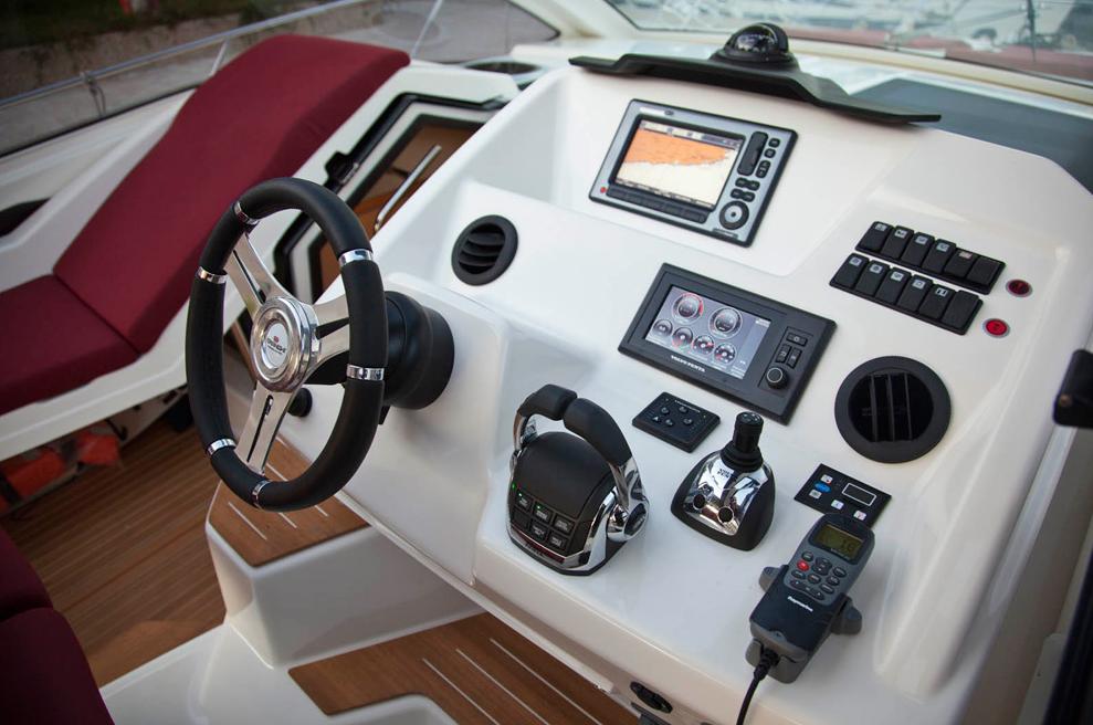 Το νέο M44 Hard Top ξεχωρίζει από την πρώτη ματιά χάρη στο συνδυασμό χρωμάτων, με το μοβ χρώμα της ατράκτου να «δένει» αρμονικά με τα λευκό και τα κόκκινα καθίσματα. Οι μεγάλες πλευρικές επιφάνειες, ολοκληρώνουν την καλαίσθητη εικόνα του σκάφους, προσφέροντας συνάμα και πλούσιο φυσικό φως στο εσωτερικό.
