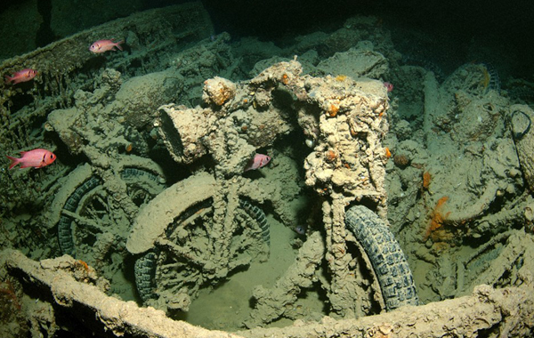 Το SS Thistlegorm ήταν ένα βρετανικό πλοίο μεταφοράς υλικού πολέμου, το οποίο βύθισαν οι Γερμανοί το 1941. Όταν οι δύτες μπήκαν στα αμπάρια του, ανακάλυψαν ότι ήταν γεμάτο, εκτός από όπλα και πυρομαχικά, με δεκάδες οχήματα και μοτοσικλέτες.