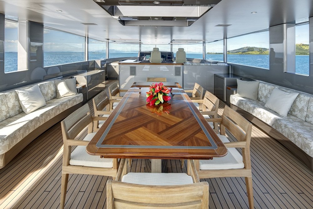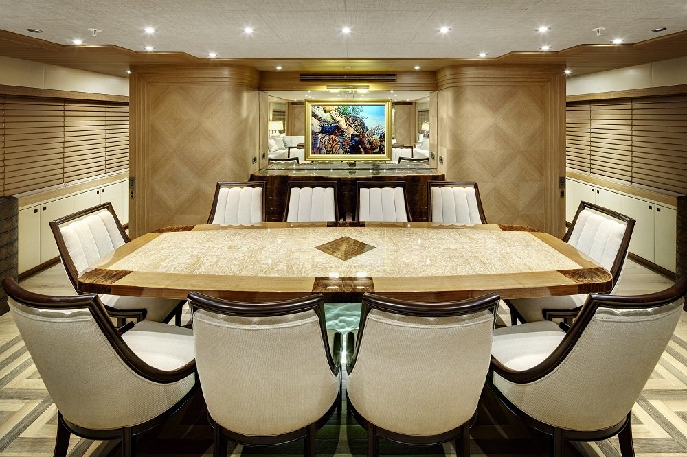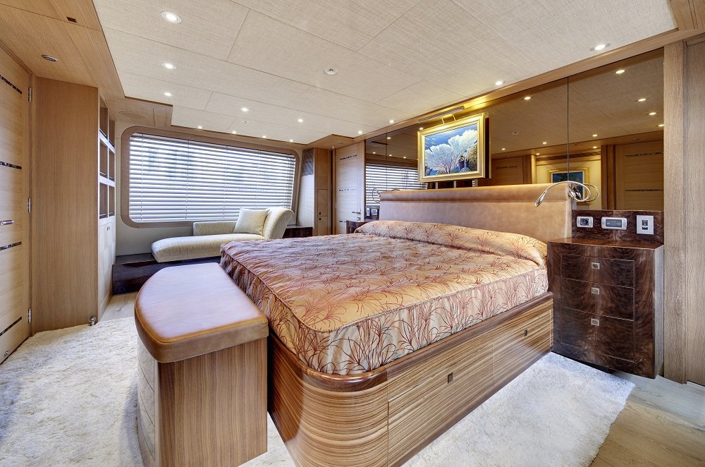 Ευρισκόμενο σε πλήρη αρμονία με τις εξωτερικές γραμμές, το εσωτερικό είναι μοντέρνο με hi tech πιλοτήριο, απίθανα έπιπλα και ασυνήθιστους χρωματικούς συνδυασμούς. Οι καμπίνες είναι πέρας κάθε κριτικής, με την άνεση και την πολυτέλεια να κυριαρχούν. Στα μπάνια έχουν χρησιμοποιηθεί τα πιο ακριβά μάρμαρα. Μπορούν να φιλοξενηθούν έως οκτώ άτομα, εκτός από το πλήρωμα και τον κυβερνήτη. Περιλαμβάνει ένα πλήρως εξοπλισμένο γυμναστήριο, μπαρ, τρία σαλόνια, τραπεζαρίες και κουζίνα.