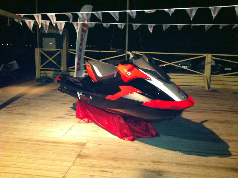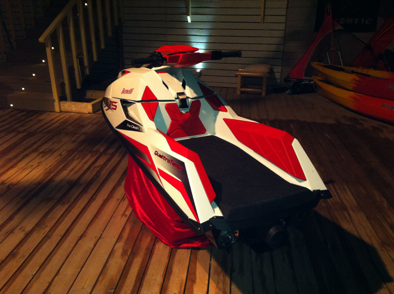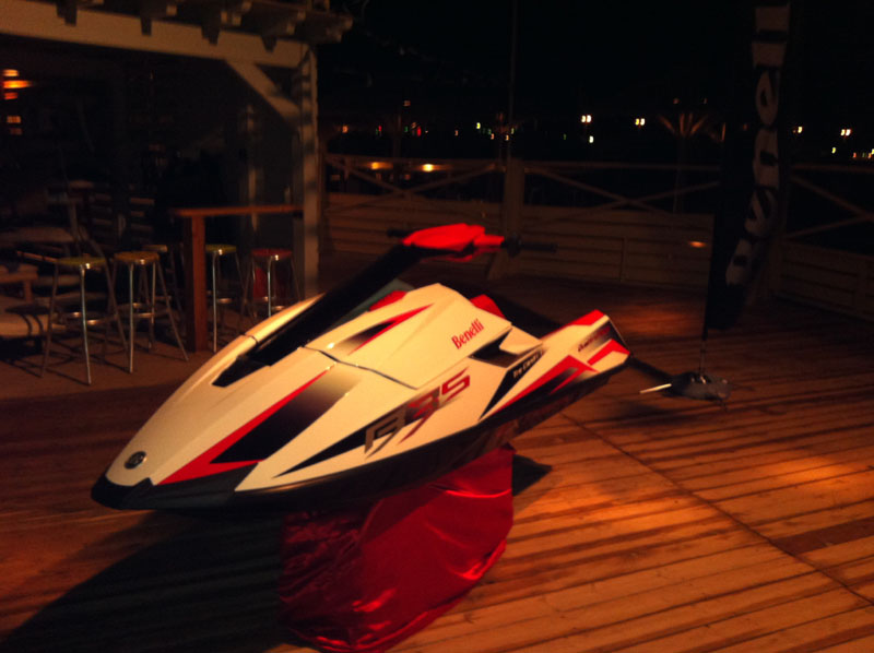 Παρουσία φίλων της μάρκας αλλά και των Jet Ski πραγματοποιήθηκε το βράδυ της Πέμπτης η στατική παρουσίαση των νέων μοντέλων της Benelli. Δίπλα ακριβώς από το… κύμα, ο Βαγγέλης Ζούμπερης έκανε γνωστά τα μέλη της ελληνικής «ομάδας» της Benelli (Σπύρος Μπόγδανος, Χρήστος Καραγιαννόπουλος και Δημήτρης Παπαδάκης) και αποκάλυψε τα δύο ξεχωριστά wave runner, το B3R Sport με 315 ίππους (καθιστό) αλλά και το «όρθιο» B3S Extreme με τους 180 ίππους.