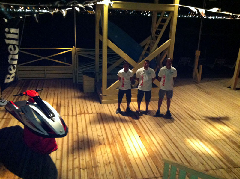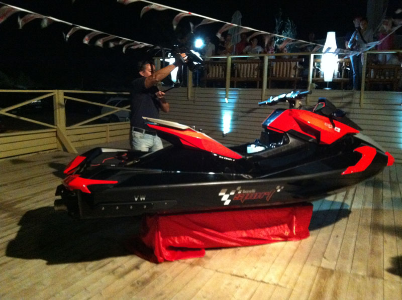Παρουσία φίλων της μάρκας αλλά και των Jet Ski πραγματοποιήθηκε το βράδυ της Πέμπτης η στατική παρουσίαση των νέων μοντέλων της Benelli. Δίπλα ακριβώς από το… κύμα, ο Βαγγέλης Ζούμπερης έκανε γνωστά τα μέλη της ελληνικής «ομάδας» της Benelli (Σπύρος Μπόγδανος, Χρήστος Καραγιαννόπουλος και Δημήτρης Παπαδάκης) και αποκάλυψε τα δύο ξεχωριστά wave runner, το B3R Sport με 315 ίππους (καθιστό) αλλά και το «όρθιο» B3S Extreme με τους 180 ίππους.