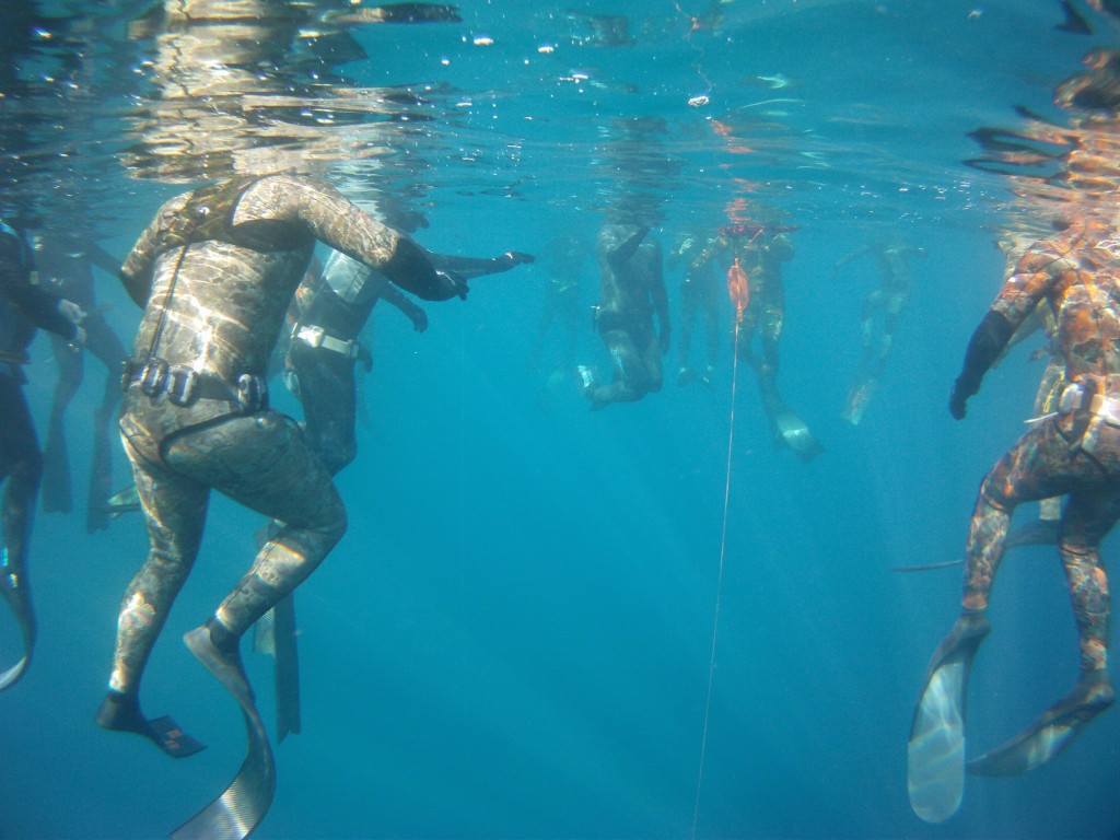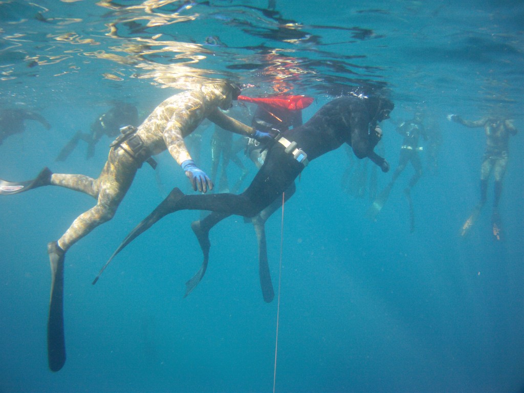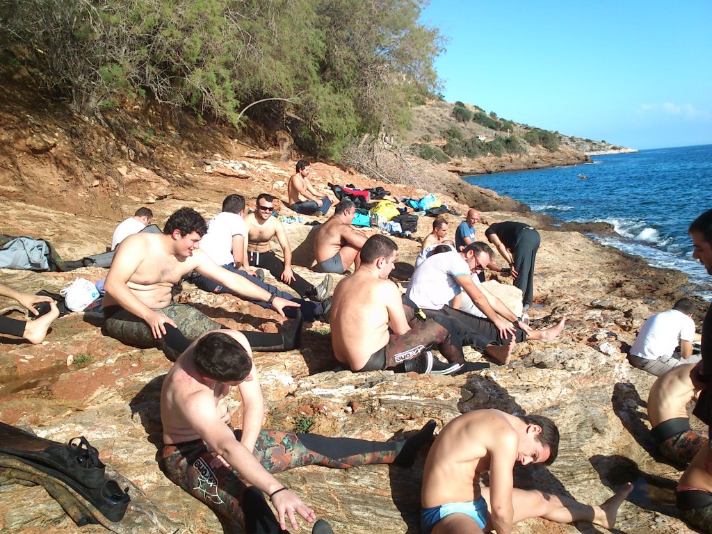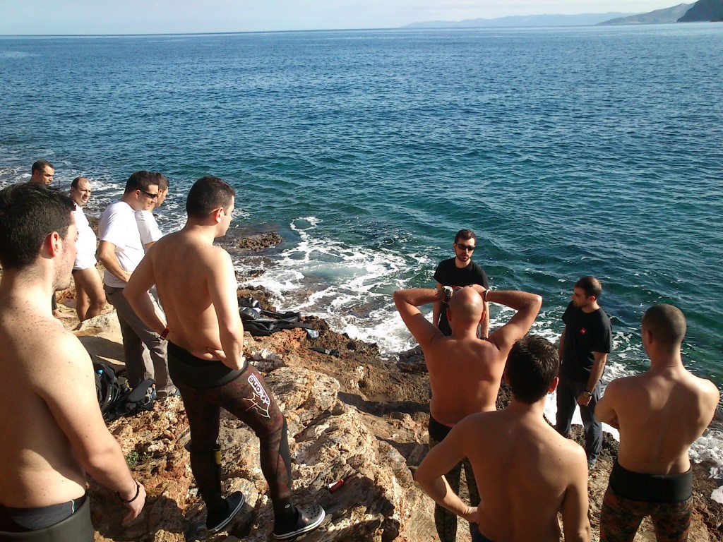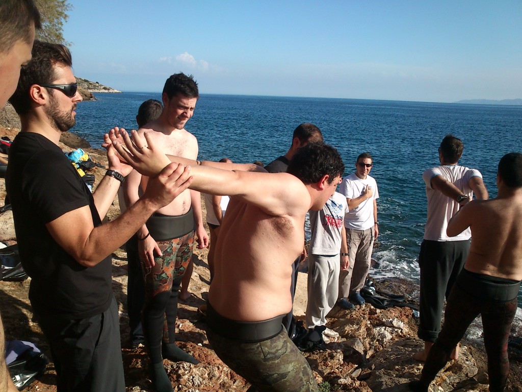 Το πρακτικό μέρος έγινε στο Δασκαλειό, στο οποίο οι συμμετέχοντες εκτέλεσαν βουτιές στο σχοινί, όπου οι εκπαιδευτές διόρθωναν τον καθένα ξεχωριστά με σκοπό τη βελτίωση της βουτιάς, της τεχνικής και της εξοικονόμησης ενέργειας ως επακόλουθο. Θετική εντύπωση έκανε το αρκετά υψηλό επίπεδο των παρευρισκομένων. Επίσης έγινε προσομοίωση καταστάσεων που μπορούν να οδηγήσουν σε υποξία μέσω υποθετικών σεναρίων και οι συμμετέχοντες διδάχθηκαν στην πράξη το τι πρέπει να κάνουν σε τέτοιες καταστάσεις.
