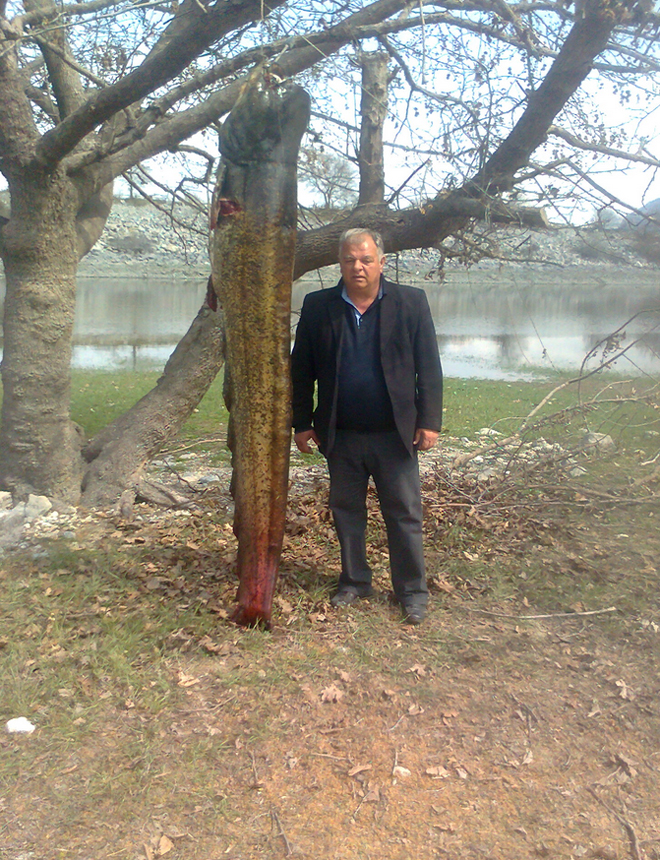 Στη φωτογραφία, ο προϊστάμενος Αλιείας της Περιφέρειας Δυτικής Μακεδονίας Γιώργος Μαργαρίτης, δίπλα στο μεγάλο ψάρι, το μεγέθος του οποίου είναι, πραγματικά, εντυπωσιακό!