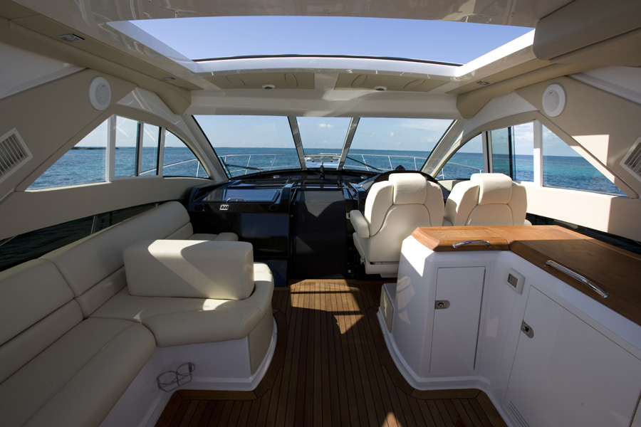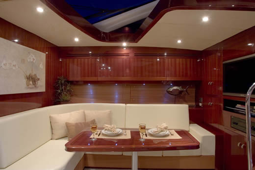 Στο εσωτερικό, οι ξύλινες επιφάνειες κυριαρχούν. Καναπέδες, κουζίνα, μπάνιο, τραπεζαρία, δεν θα μπορούσαν να λείπουν. Οι τρεις καμπίνες περιλαμβάνουν, χώρους για αποσκευές, τουαλέτες /w.c., τηλεόραση, προσφέροντας κάθε άνεση στους φιλοξενούμενους. Το επίπεδο εξοπλισμού του 5260 εντυπωσιάζει, καθώς διαθέτει ακόμα και το σύστημα Ips της Volvo, με το χειρισμό του σκάφους να γίνεται μέσω ενός μικρού μοχλού. Η πλεύση του γίνεται μέσω δύο κινητήρων, συνολικής ισχύος 1.740 ίππων, με τη μέση ταχύτητα να φθάνει τα 35 ναυτικά μίλια.