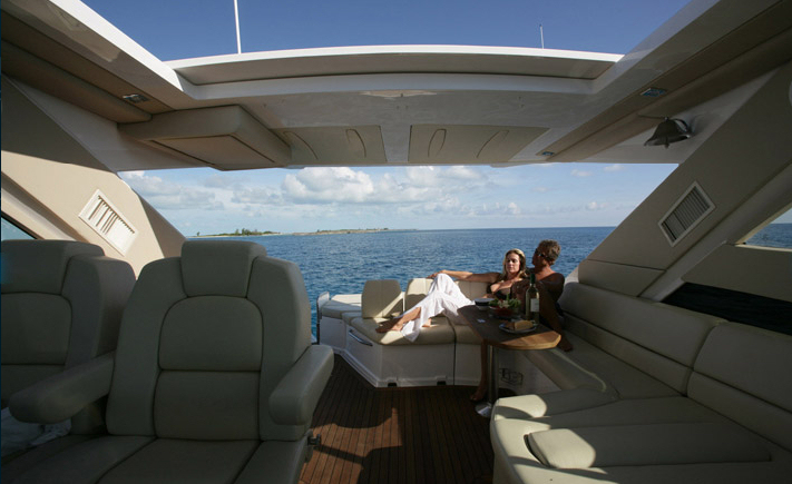 Το «καμάρι» του αμερικανικού ναυπηγείου, έχει μήκος 16,15 μέτρα και περιλαμβάνει δύο καταστρώματα. Οι σύγχρονες γραμμές του και οι γυάλινες επιφάνειες, προσδίδουν περαιτέρω κομψότητα στο σκάφος, με την οροφή να λειτουργεί ηλεκτρικά. Οι χώροι των καταστρωμάτων είναι εντυπωσιακοί, με τους πλευρικούς διαδρόμους να διαθέτουν ικανοποιητικό πλάτος, τα στρώματα ηλιοθεραπείας στην πλώρη να περιλαμβάνουν ακόμα και χώρους αποθήκευσης, με την πρύμνη να έχει κλειστό γκαράζ για ένα βοηθητικό φουσκωτό.