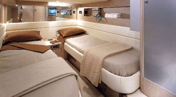 Διαθέτει τρεις καμπίνες, μία Master και δύο μικρότερες, και μπορεί να φιλοξενήσει με άνεση έξι άτομα. Τροφοδοτείται από δύο πετρελαιοκινητήρες της Man, συνολικής ισχύος 1.100 ίππων, με την τελική ταχύτητα να αγγίζει τους 40 κόμβους και την αυτονομία να φθάνει τα 260 ναυτικά μίλια.