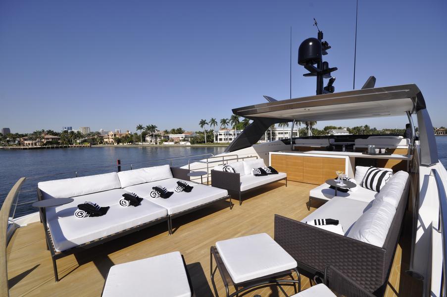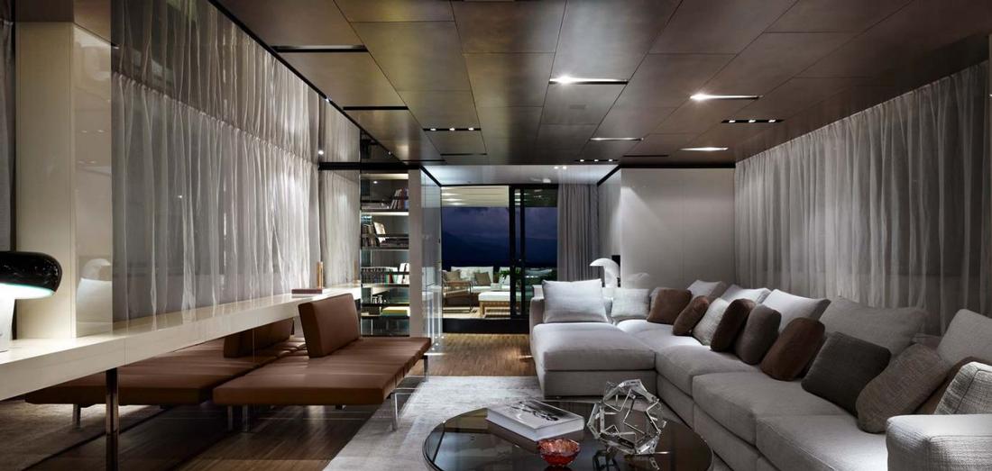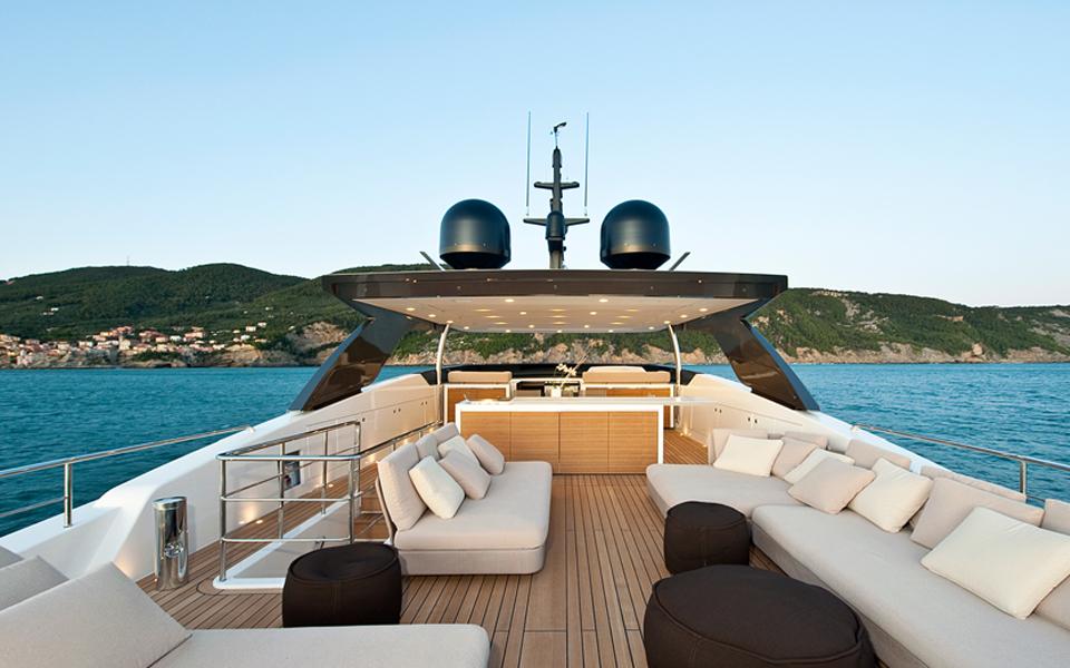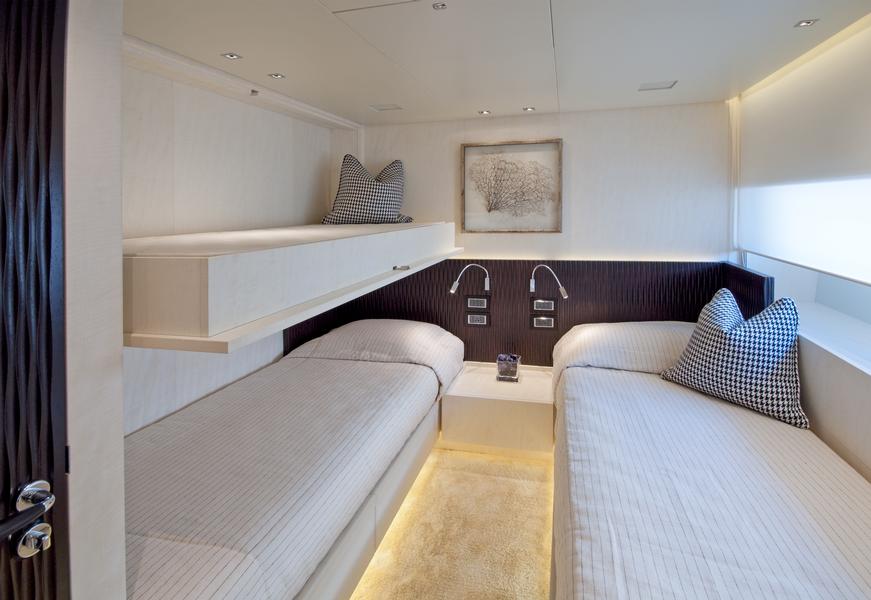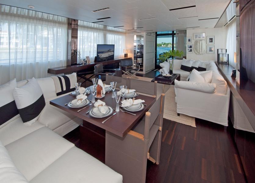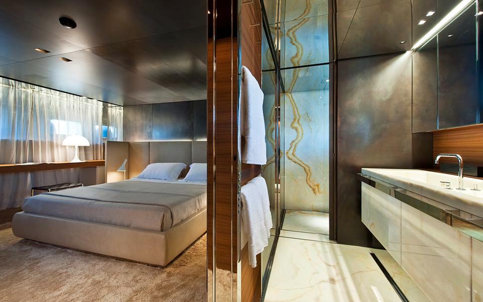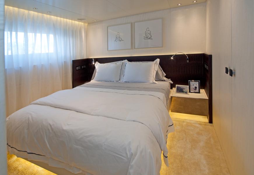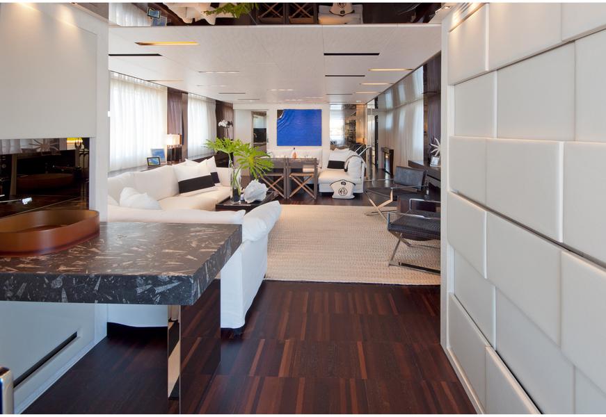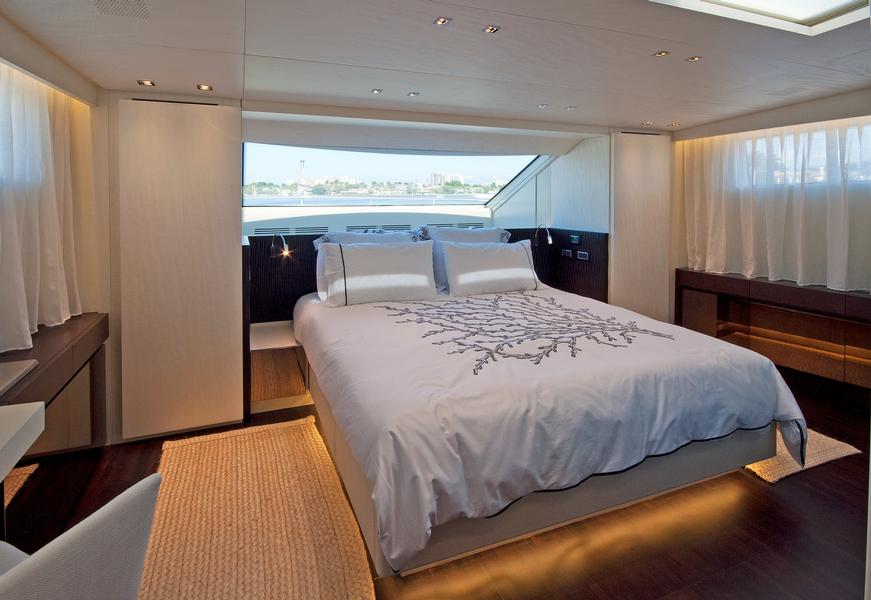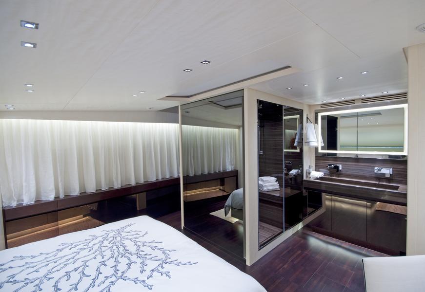 Το εσωτερικό είναι διαθέσιμο σε δύο εκδόσεις (μίνιμαλ ή κλασικό), ανάλογα με τα γούστα του ενδιαφερόμενου. Το σαλόνι, τα μπάνια, οι τραπεζαρίες θυμίζουν περισσότερο βασιλική σουίτα ξενοδοχείου, με την πολυτέλεια να είναι διάχυτη σε κάθε σημείο. Στο κατώτερο τμήμα βρίσκονται τέσσερις καμπίνες, μία VIP, μία Master και δύο απλές.
