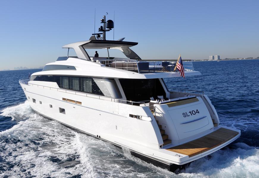 Ο πρώην διευθυντής της Azimut και νυν της San Lorenzo, Massimo Peroti, κατάφερε να αναδείξει και πάλι την ιταλική εταιρεία με ένα εντυπωσιακό σκάφος, το SL 104. Με μήκος 31,7 μέτρα, μεγάλες σκουρόχρωμες γυάλινες επιφάνειες, δυναμικές γραμμές, συνδυασμό λευκού χρώματος και ξύλου, το mega-yacht κλέβει την παράσταση με την πληθωρικότητά του. Η εργονομία είναι σε υψηλά επίπεδα, με τον ωφέλιμο χώρο τόσο στο πάνω κατάστρωμα όσο και στο πρυμναίο καθιστικό να προσφέρει κάθε άνεση στους επιβάτες. Το fly bridge εκτός από ελκυστικό στην εικόνα είναι και πρακτικό, καθώς προστατεύει σε συνθήκες βροχής. Ο κυβερνήτης έχει άμεση επαφή από τον εξωτερικό χώρο στο cock-pit, το οποίο, πέραν της φουτουριστικής σχεδίασης, περιλαμβάνει και πληθώρα οργάνων.
