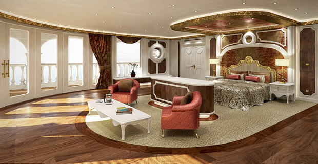 Τα σαλόνια του yacht και τα δωμάτια είναι υπερπολυτελή, προσφέροντας απίστευτα επίπεδα άνεσης στους 16 επιβάτες. Η σουίτα του ιδιοκτήτη είναι πέρα από κάθε φαντασία, καθώς διαθέτει υπνοδωμάτιο με τζάκι, ιδιωτική βεράντα, τζακούζι, πισίνα και χώρο για ηλιοθεραπεία.