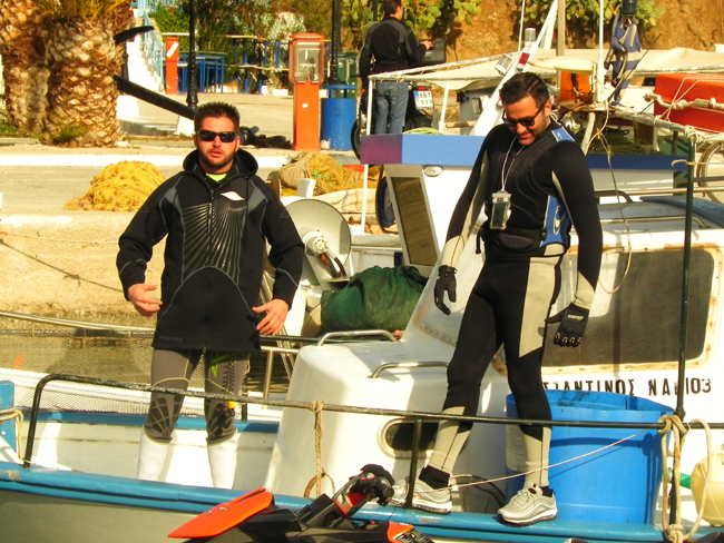 Ο… «Κλειδαράς» (αριστερά) με τον άνθρωπο της ημέρας, Κωνσταντινίδη. Ο τελευταίος έπεσε με τα ρούχα στη θάλασσα και καθόταν επί μία ώρα πάνω από την ψησταριά για να στεγνώσει!!!!