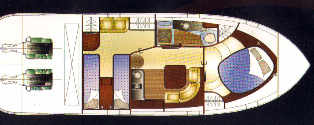 Διαθέτει δύο καμπίνες εξοπλισμένες με κρεβατοκάμαρα (στην πλώρη) και δύο μονά κρεβάτια στην πρύμνη. Επιπλέον, το Ardor 34 είναι εφοδιασμένο με κλειστό μπάνιο, κουζίνα και φυσικά καθιστικό. Πολύ απλά, θεωρείται ιδανικό για μία οικογένεια που θέλει να έχει όλες τις ανέσεις.