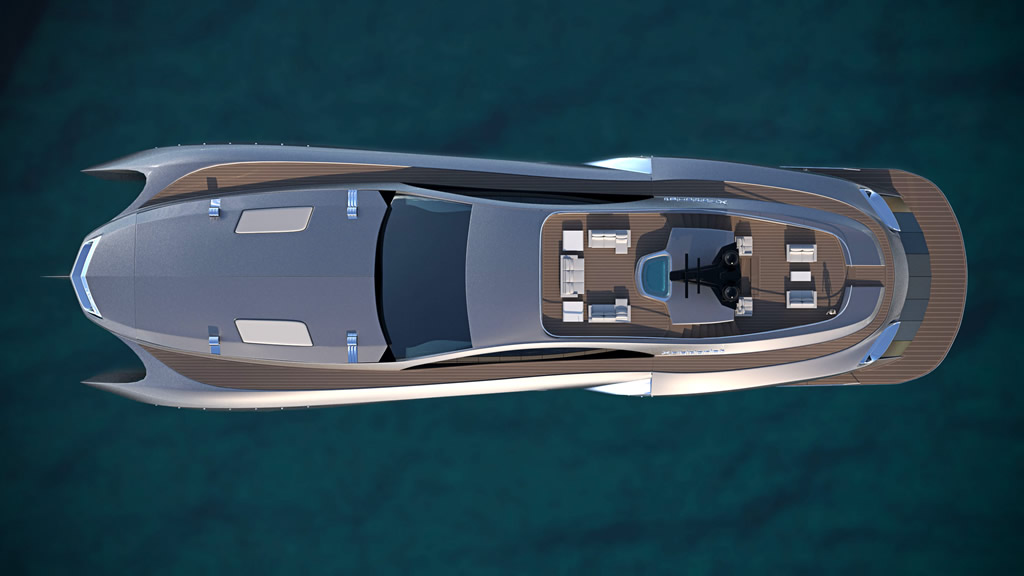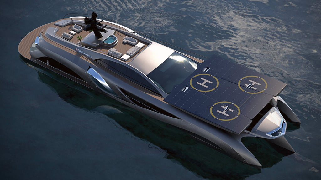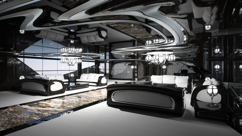 Ο σχεδιαστής, Eduard Gray, δημιούργησε ένα από τα πιο αντισυμβατικά σκάφη που έχουμε δει ποτέ. Μια υπερπολυτελή θαλαμηγό 75 μέτρων, που φαίνεται θαρρείς και είναι αυτοκίνητο που πλέει στο νερό. Η διαρρύθμιση των εσωτερικών χώρων είναι πραγματικά εκπληκτική. Ο Σουηδός designer έχει «οργιάσει» σχεδιαστικά, με το κάτω τμήμα να μετατρέπεται σε πολυτελές καθιστικό ή ακόμα και εκθεσιακό χώρο, με ένα πιάνο Steinway να καλωσορίζει τους φιλοξενούμενους.