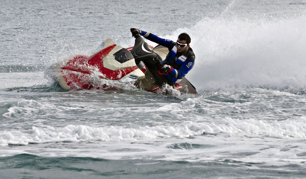 Ο τελευταίος έχει τη δυνατότητα πριν ξεκινήσει τη «βόλτα» του να ρυθμίσει το τιμόνι ενώ η δυνατότητα ρύθμισης της γωνίας πλεύσης ακόμα και κατά τη διάρκεια της βόλτας είναι ένα στοιχείο που θα ικανοποιήσει τους «ψαγμένους». Αυτό όμως που μετράει σε ένα τόσο δυνατό σκάφος είναι οι επιδόσεις και γι’ αυτό άλλωστε θα πληρώσει ο υποψήφιος το τίμημα που κυμαίνεται πάνω από τα 17.000 ευρώ. Στην γλώσσα των αριθμών τα 30 μίλια από στάση έρχονται σε 1,8 δευτερόλεπτα ενώ στην περίπτωση που το γκάζι πάει… τέρμα, το κοντέρ θα δείξει ακόμα και 70 μίλια, κάτι που για να γίνει πρέπει οι συνθήκες να είναι ιδανικές. Αυτό που μας άρεσε ήταν η άνεση τόσο σε ταξίδι όσο και σε καιρό. Τα τραντάγματα από τα κύματα αποσβένουν χάρη στην πολύ καλή σχεδίαση της γάστρας ενώ το αναπαυτικό κάθισμα βοηθά σημαντικά στο να έρθει το επιθυμητό αποτέλεσμα και να μην νοιώθει ο χρήστης «πιασμένος» ακόμα και έπειτα από ώρα πάνω στο σκάφος,