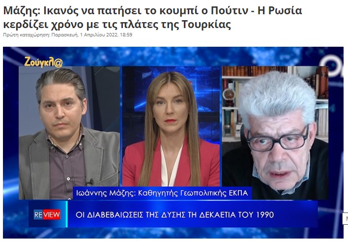 «Η πυραυλική τεχνολογία της Ρωσίας είναι μη ανασχέσιμη από το ΝΑΤΟ», είπε, προσθέτοντας: «Ο Πούτιν μπορεί να αντιδράσει με ασύμμετρο τρόπο απέναντι στο χτύπημα στη ναυαρχίδα “Μoskva”, διότι είναι κυρίως θέμα πρεστίζ για τη Μόσχα».