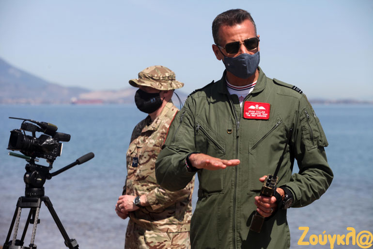 To zougla.gr είχε τη σπάνια ευκαιρία να παρακολουθήσει την εξάσκηση της επίλεκτης Μοίρας μαζί με τον αρχηγό της, τον «Red 10» Adam Mollins, από την παραλία του Χαλκουτσίου.