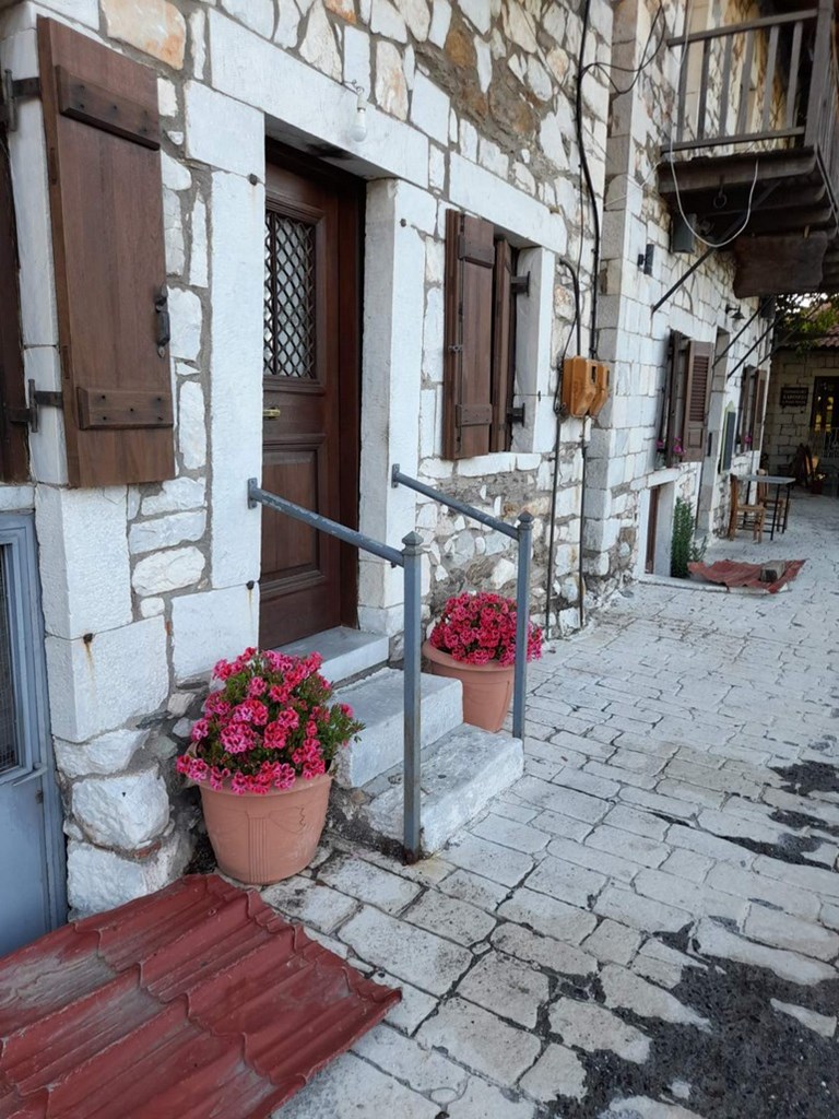 Αυτό το κατάλυμα -το «Εράσμιον»- το οποίο διευθύνει με ήθος και κουλτούρα ο Κωνσταντίνος, είναι ο «πύργος ελέγχου» έχοντας στη ρίζα του το ναό του Αγίου Ιωάννη και -μια που βρισκόμαστε στα 1145 μέτρα – δάσος με καστανιές, μυγδαλιές, καρυδιές, ελιές, άγριες αχλαδιές, βερυκοκιές, κερασιές. Αυτά τα φρούτα του δάσους, δίνουν άλλωστε την πρώτη ύλη για τα απίστευτα γλυκά και λικεράκια, που μόνο αν τα γευτεί κάποιος μπορεί να νοιώσει την αξία τους.