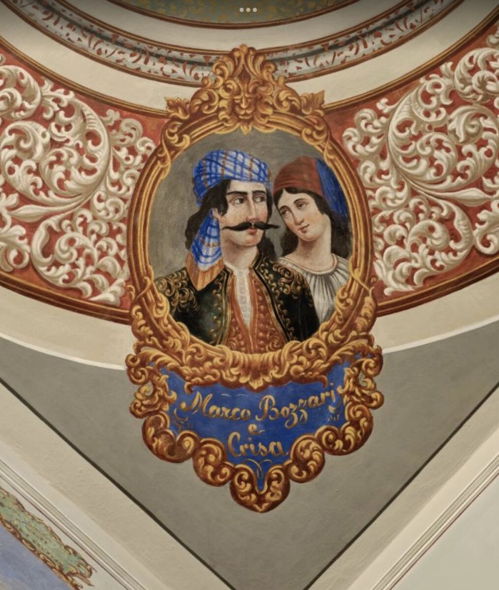 Η μεγαλοπρέπεια και η καλλιτεχνική γοητεία του κτιρίου βρίσκονται σε πρώτο πλάνο, με τις οροφογραφίες και τις τοιχογραφίες που δημιουργήθηκαν συλλογικά από καλλιτέχνες που δραστηριοποιούνταν στο νησί κατά τον 19ο αιώνα, πλήρως συντηρημένες από την Κλεοπάτρα Τσουράκη. Αναγεννησιακά στοιχεία, μυθικά πλάσματα αλλά και αναπαραστάσεις προσώπων της Ελληνικής Επανάστασης και της Φιλικής Εταιρείας συνθέτουν μια μοναδική εμπειρία διαμονής, μια συνομιλία του χθες και του σήμερα.