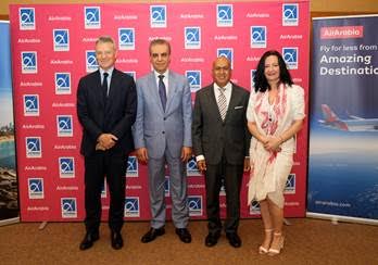(εικονίζονται από αριστερά) O Γιάννης Παράσχης, Διευθύνων Σύμβουλος (CEO) Adel Al Ali, CEO Air Arabia, ο Πρέσβης των Ηνωμένων Αραβικών Εμιράτων στην Ελλάδα, Dr Ali Obaid Al Dhaheri και η Ιωάννα Παπαδοπούλου Διευθύντρια Επικοινωνίας & Μάρκετινγκ, ΔΑΑ