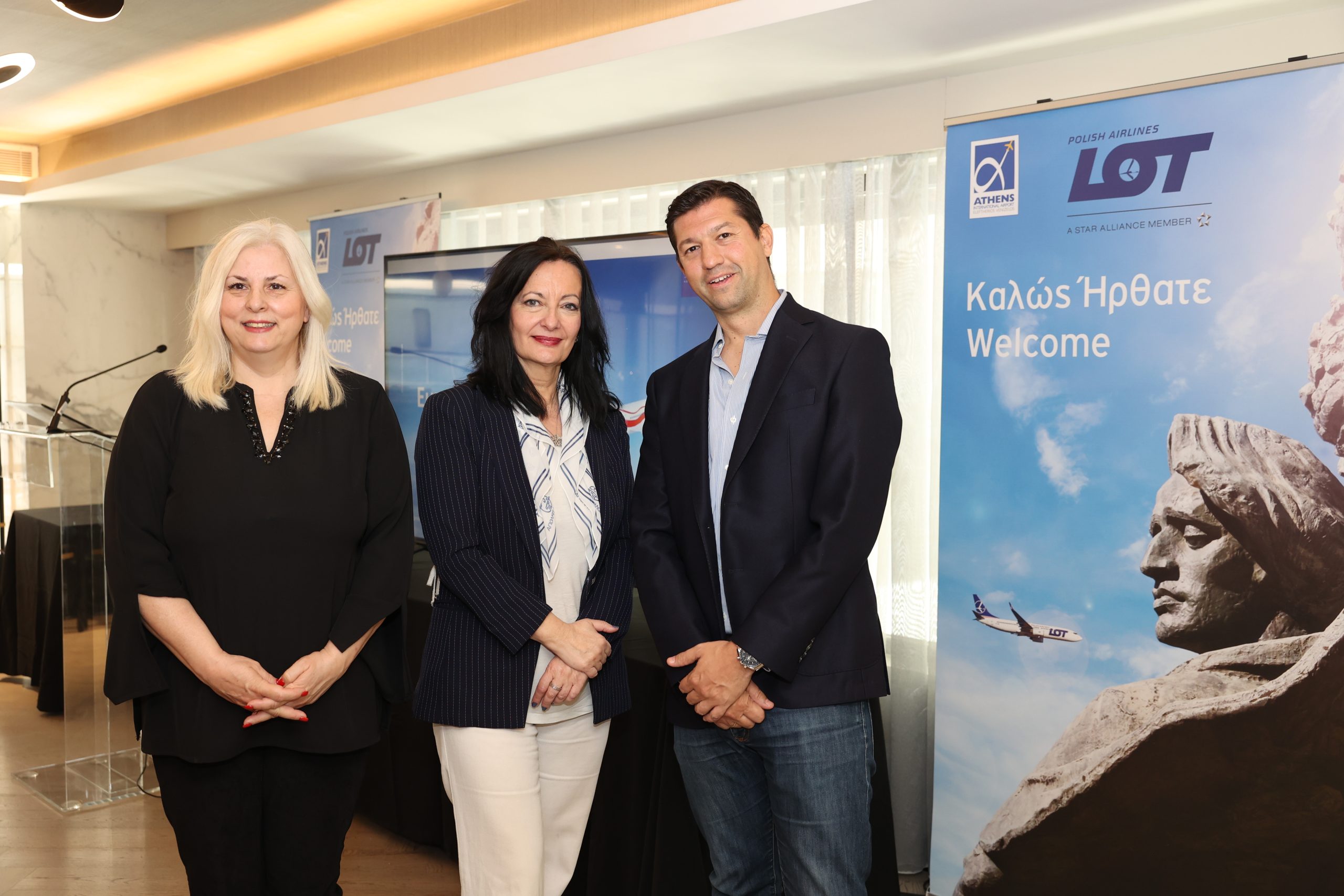 κ. Αγγελική Συνοδινού, Εμπορική Διευθύντρια (Commercial Director), GSA, LOT, κ. Ιωάννα Παπαδοπούλου, Διευθύντρια Επικοινωνίας & Μάρκετινγκ, ΔΑΑ, κ. Νίκος Σοφιάδης, Managing Director, Goldair SA