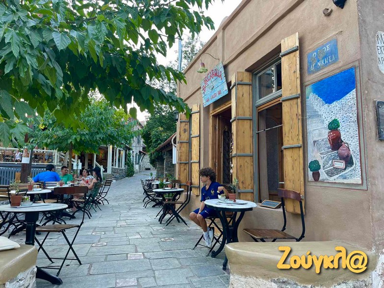Συνεχίζοντας τον κατήφορο από τον κοιμητηριακό, πλέον, ναό της Κοιμήσεως της Θεοτόκου, τον Ιερό Ναό του Αγίου Νικήτα και το Λαογραφικό Μουσείο, όλοι οι δρόμοι οδηγούν στην κεντρική πλατεία. Εκεί συναντά κανείς το μοναδικό στον παλαιό οικισμό γραφικό καφέ- wine μπαρ και δίπλα το εστιατόριο. Κάτω από τον βαθύσκιωτο αιωνόβιο πλάτανο, της πλατείας μπορεί κανείς να ξαποστάσει, να δροσιστεί και να χαλαρώσει απολαμβάνοντας από το πρωί τον καφέ του ή το βράδυ το ποτό και το γεύμα του.
