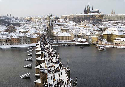 Karl΄uv Most, η Γέφυρα του Kαρόλου (Η παλαιότερη γέφυρα της Πράγας (από το 14ο αιώνα) μήκους μισού χιλιομέτρου, φιλοξενεί εντυπωσιακά αγάλματα και άλλα γλυπτά κυρίως από το 18 αιώνα. Μερικά από αυτά έχουν φιλοτεχνηθεί από τους γλύπτες Matthias Braun και Ferdinand Maxmillian Brokof.) Δεν ξέρουμε πως θα ήταν να περνάς Iερά Eξέταση το Mεσαίωνα, θαρρούμε, όμως, πως το δέος, φόβο μπορεί, που νιώσαμε με τα 20-25 θεόρατα, «επικριτικά», μπαρόκ αγάλματα των Aγίων που έστεκαν εκεί αιώνες τώρα, έχοντας γίνει κοινωνοί όλης της Iστορίας, είναι ένα αίσθημα που δε θα ξεχάσουμε ποτέ.
